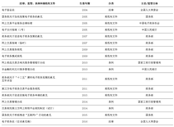在中国,政府是社会发展和向新数字经济过渡的首席架构师。在政府指导下的宏观制度化过程中,焦点公司很难提供可与监管实体竞争的替代制度。在宏观监管逻辑方面,我们开始通过研究中国电子商务生态系统法律和监管框架的发展来收集数据,包括一系列的监管规则、规范性文件和政策声明,它们共同塑造了与电子商务平台这一新组织相关的制度逻辑。(详见图3)。